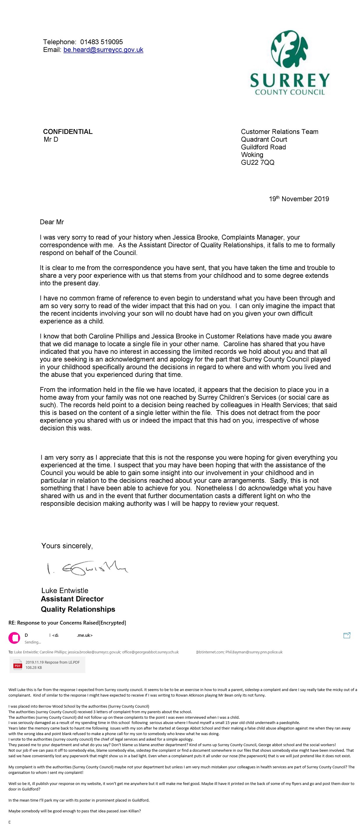 As a parent, I moved house (costing £50k) for better school opportunities for my children. At George Abbot School (Guildford, ~2007–8), my son's special needs teacher reacted to his file with: “Oh shit, he’s only level 2—we’ll lose him next year” and a tantrum. Multiple requests (five to school, one to social worker) for a simple phone call to someone who knew him well were refused over two months during minor issues that were escalating. CAMHS (who never met him) suggested foster care. Meanwhile, I discovered my wife's affair. It was time to do something, something different. The stress led to hospitalization. External intervention and documentation (including covert recordings.) My approaching the prior school head and employing for my child a qualified child psychologist helped resolve things; my children are now approaching their 30's and thriving after mum walked out on the family via text message. She lost everything in the divorce.